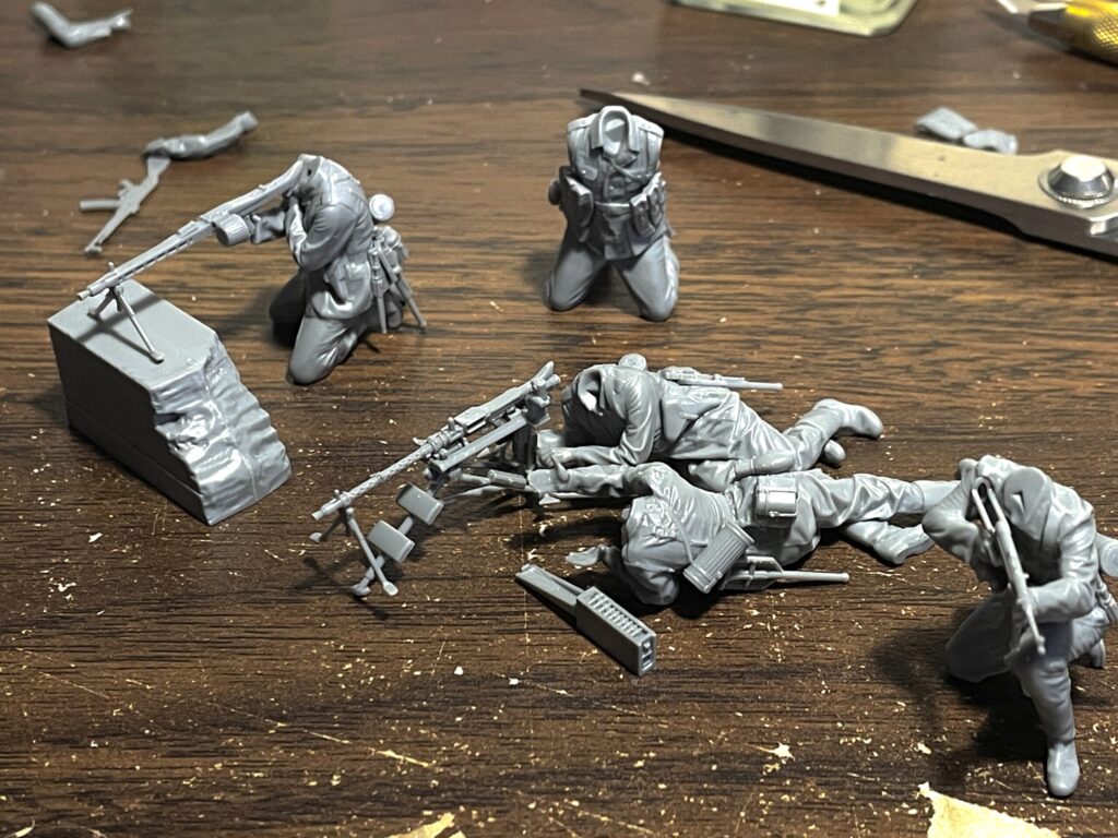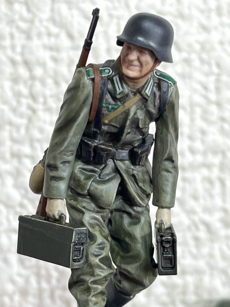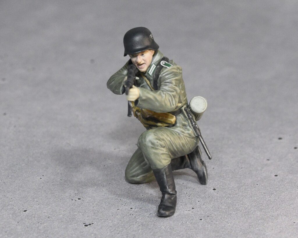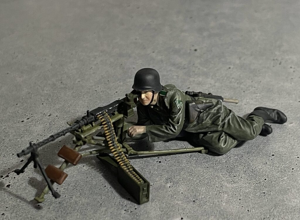 自然なポージング: 3Dスキャンに基づいているため、MG42を構える兵士の肩のラインや、弾帯を持つ手の角度が驚くほど自然。